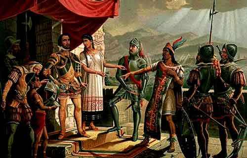 Cortez rozmawiał z Montezumą za pośrednictwem Malinche. Była to piękna córka