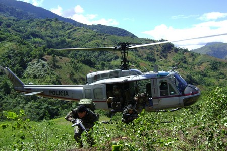 - Peruwiańska wojna narkotykowa w okolicach miasteczka Tingo Maria w dolinie rzeki Huallaga. Wraz z policją antynarkotykową uczestniczyliśmy w akcji poszukiwania i niszczenia fabryk kokainy. Huallaga to teren działania terrorystów ze Świetlistego Szlaku, a kokaina jest tam głównym dobrem handlowym.