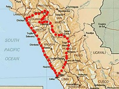 - Przebycie środkowego Peru mało znanymi (w tym tymi wciąż znajdującymi się w fazie budowy) drogami przez góry. Niektóre drogi były zaznaczone na mapie, ale jeszcze nie istniały w rzeczywistości (o czym przekonaliśmy się dopiero na miejscu).