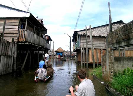 Na to, aż statek łaskawie wyruszy w drogę, czekaliśmy przez trzy dni. Spaliśmy przez ten czas na hamakach na górnym pokładzie, obserwując niekończący się załadunek. Raz wybraliśmy się na wycieczkę na łódce starego Indianina po lagunach i bagnach otaczających Pucallpę, ale był to jedyny przerywnik. Co gorsza nie wiedzieliśmy, kiedy wogle nasz statek odpłynie. Codziennie słyszeliśmy od kapitana lub jego pomagierów, że wyruszymy już dziś wieczorem, a w najgorszym wypadku, następnego dnia nad ranem.