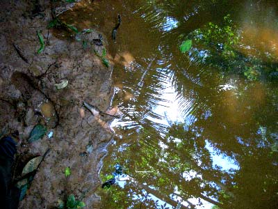 Koszulę, którą wczoraj powiesiłem na gałęzi, aby wyschła, zastaję oblepioną mrówkami. Nie da się ich wytrzepać, powczepiały się szczękami o strukturę materiału. Gdy wyrywam je, zostają dziury. Mrówki zwabiła sól, która jest w pocie. Sól to jeden z najtrudniejszych do zdobycia towarów w dżungli, którego jednak potrzebują wszystkie żywe istoty do fukcjonowania. Wyrzucam koszulę, już nie da się jej uratować. Obładowani plecakami, wycinamy na zmianę scieżkę w roślinności. Przedzieramy się naprzód, po kostki brodząc w błocie lub gnijących resztkach roślin. Forsujemy strumienie, odczepiamy się od kolczastych gałęzi, które co jakiś czas nas 'chwytają'. Wraca wczorajsze uczucie - gorąco, zadyszka, każdy ruch to tytaniczny wysiłek. Skóra jakby oblepiona mokrą, ciepłą watą. Ta wata ciąży i dusi.