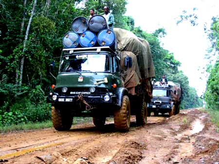 Wysiadamy, prostujemy kości. Na kawałku grząskiej plaży stoi już kilka ciężarówek. Ich kierowcy śpią w szoferkach. A wokół - rzeka, dżungla, niebo, i komary. Słowem bardzo romantycznie.