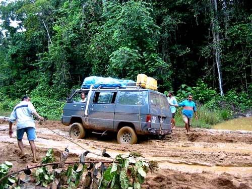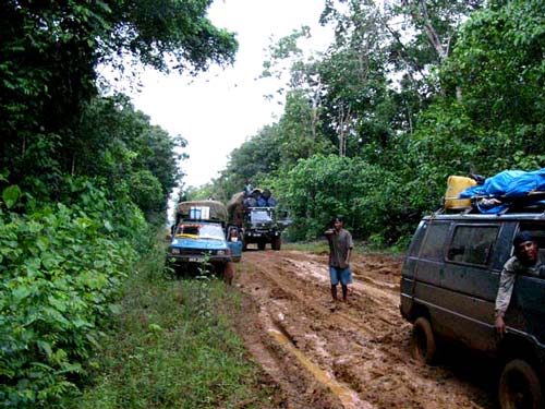 - Wygodniej się jeździ przez Gujanę Francuską - narzeka jeden z pasażerów - na tamtej drodze nie ma tyle błota.