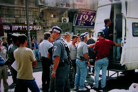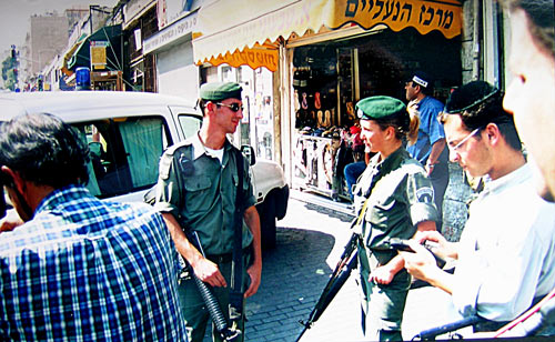 Izraelska kontrola graniczna należy do najbardziej drobiazgowych na świecie. Szczegółowo sprawdzany jest bagaż i zawartość kieszeni przybyszów, nikogo nie ominie też "wywiad" ze służbami bezpieczeństwa. Szczupły chłopak i młode najwyżej dwudziestoletnie kobiety nie wygladają groźnie, mimo wiszących u boku pistoletów. Nic bardziej mylącego. Na jeden rozkaz do zaczepionego na ramieniu komunikatora terminal zapełni się uzbrojonymi po zęby antyterrorystami. Po długiej podróży po krajach arabskich wręcz kole w oczy czystość. Tłum przyjezdnych - Żydów i Arabów tloczył się w kolejce do bramek kontrolnych. Turystów zaledwie kilku. Ostatnimi czasy Bliski Wschód nie jest zbyt popularnym miejscem na wakacje.
