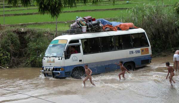 Trochę czekamy i schodzi sie chyba cała wieś, głównie mężczyźni. Przynoszą dodatkowe stalowe liny i cala męczarnia zaczyna sie od nowa. Teraz jest nas dwa razy więcej, a ci mężczyźni, choć mali, to wyglądają jakby dopiero, co od pługa zostali oderwani. Teraz samochód wyjeżdża z rzeki jak zabawka, nie ma żadnego problemu. Kierowca od razu próbuje go odpalić, ale nie przynoszą te starania pożądanego rezultatu. Po jakimś czasie silnik jednak zaskakuje i z rury wydechowej wylewa sie duża ilość wody. Wszyscy jesteśmy pozytywnie tym zaskoczeni. Jednak istnieje szansa na to, ze dziś dojedziemy do punktu docelowego. Tak też i było.