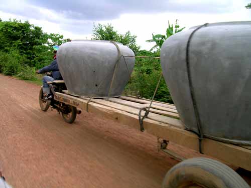 No dobra mówię, wieź nas prosto do jakiegoś taniego hotelu. W trakcie jazdy rozpoczyna się gadka, koleś nieco opowiada o sobie i sytuacji w Kambodży. Nie trzeba było długo czekać, gdy temat zszedł na płeć nie znajdującą się w tym samochodzie. Droga jest oczywiście bardzo wyboista. Zastanawiam się, czy będzie tu jeszcze jakiś asfalt. Koleś mówi, że musimy zatankować i podjeżdża na stację benzynową, która składa się z kilku butelek po fancie wypełnionych paliwem.