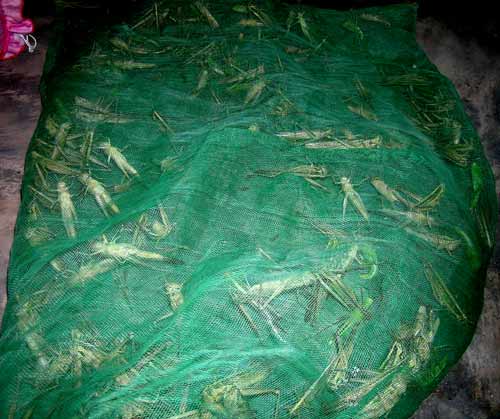 Świerszcze jeszcze żywe, złapane w siatkę...