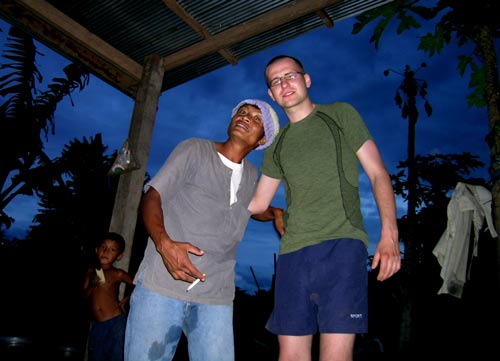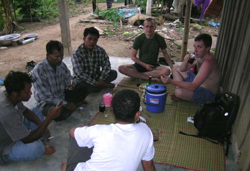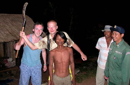 Przyjeżdza policja. Koleś nas woła. W towarzystwie jakiś ośmiu osób udajemy się w kierunku miejsca zamieszkania killera. Mamy przy tym doskonałe humory, bo policjanci wygladają zabawnie, poza tym jest ciemno, środek dżungli, a ci idą jak po swoje i na dodatek są złojeni! (widać interwencja przerwała im konsupcję miejscowej whisky marki mekong, czyli głównej roboty, wykonywanej na posterunku).